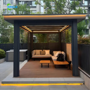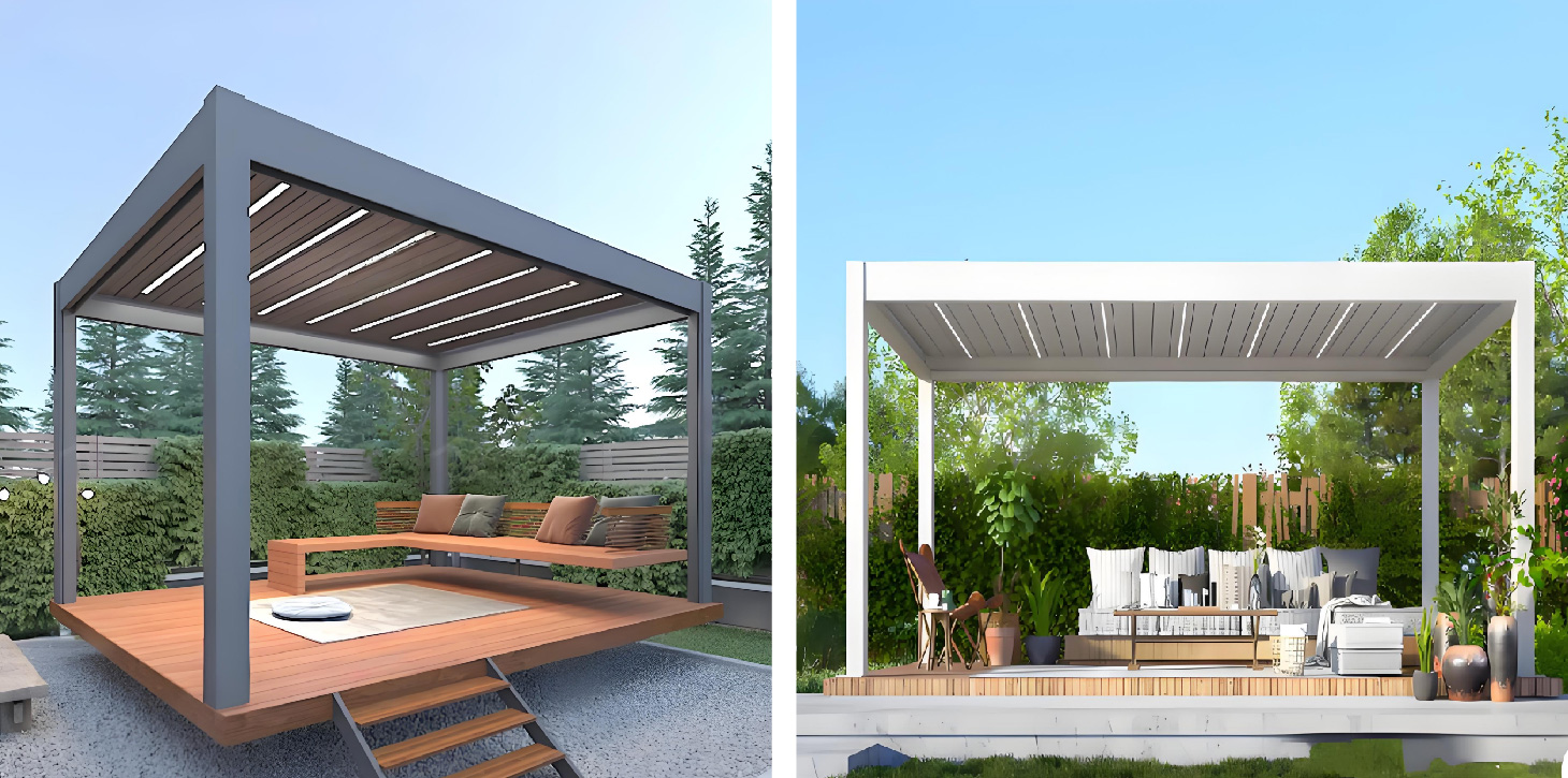 Adaptabilité du scénario complet: Couvrant des scénarios tels que les loisirs dans les cours, les sièges extérieurs commerciaux, les installations d'appui aux zones pittoresques et les bases de camping ; permettant la personnalisation des matériaux (alliage d'aluminium/bois massif/panneaux PC), des tailles et des modules fonctionnels ; avec des propriétés de pare-soleil, d'étanchéité à la pluie, à la neige et de ventilation ; s'adaptant à différents climats et besoins d'utilisation.